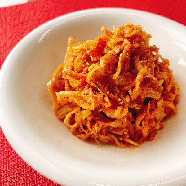噛むほどに広がる、切干大根×さきいかの旨み。時間を置くほど味がなじみ、うまみが深まる韓国風の和え物です。おつまみにも!